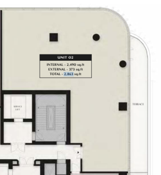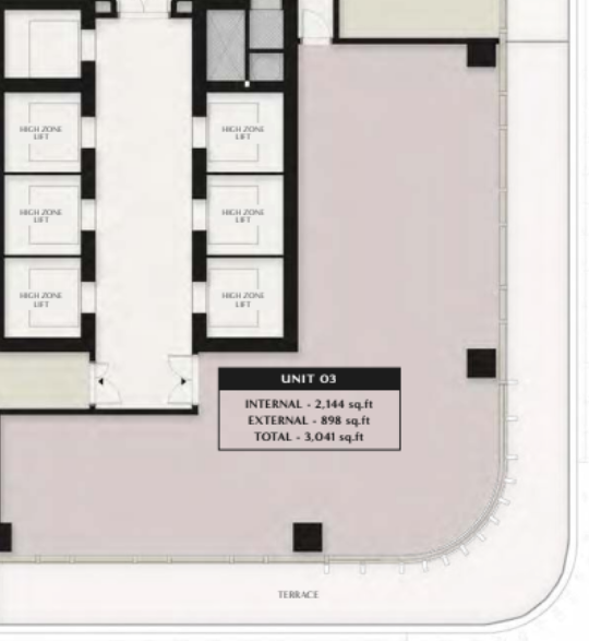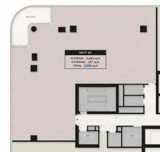 • Plan type moyen : 12 250 sq.ft (4 unités par étage)