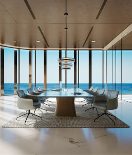 Pensés pour la flexibilité et la productivité, les bureaux offrent des vues panoramiques sur la mer et la skyline de Dubaï grâce à des baies vitrées pleine hauteur.