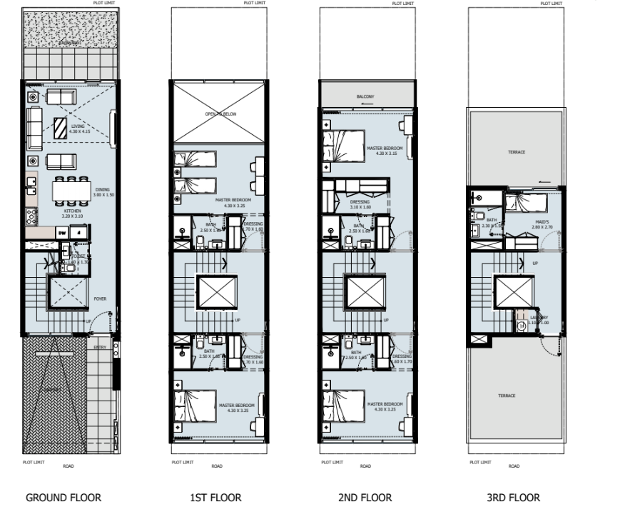 Certaines townhouses : rooftop, double hauteur dans le séjour, buanderie et chambre pour le personnel