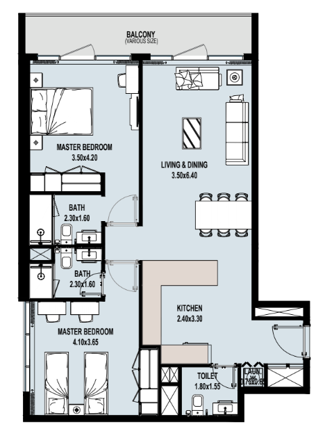 Chaque unité est conçue pour maximiser l’espace, la lumière naturelle et la fluidité des pièces, avec des balcons ou terrasses privés selon le plan.