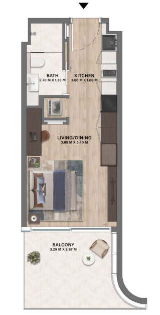 Plan de paiement : Studios & 1 chambre – 40% pendant la construction / 60% à la livraison ; 2 chambres – 35% pendant la construction / 65% à la livraison