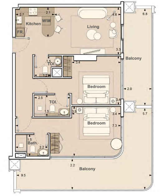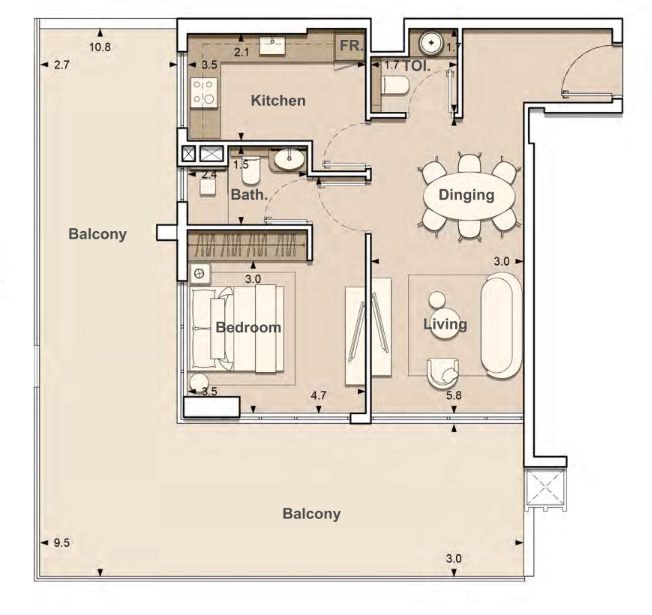 Connexion fluide intérieur / extérieur via balcons spacieux