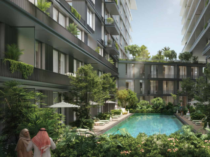 Le projet adopte une architecture moderne et élégante, avec des lignes douces et un style contemporain inspiré de l’élégance arabe. Les bâtiments sont conçus pour maximiser la lumière naturelle et offrir des vues dégagées sur les espaces verts du podium paysager.