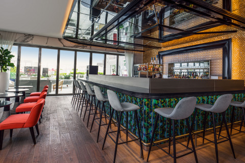 Le Th8 est situé sur le West Crescent de la Palm Jumeirah, offrant des vues panoramiques de skyline de Dubaï notamment le Dubai Marina, l'Atlantis, le Burj Al Arab et Bluewaters.
