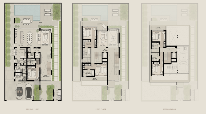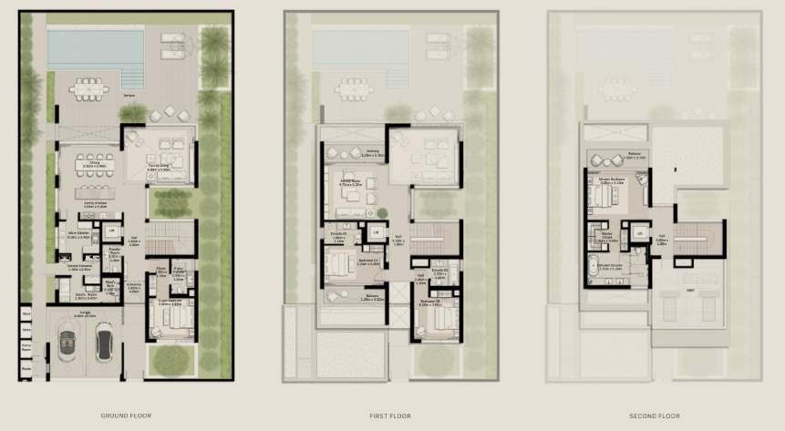 Phase 11 introduit des villas et townhouses modernes au design raffiné, intégrant des lignes épurées, des baies vitrées généreuses et des espaces à double hauteur pour une atmosphère lumineuse et aérée.