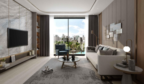 Sortez sur votre balcon et profitez d'une vue dégagée et plongeante sur la piscine et la communauté. Grâce aux baies vitrées allant du sol au plafond, votre espace de vie et salle à manger en open-plan est baigné de lumière naturelle tout au long de la journée.