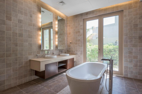 La salle de séjour se compose d’un salon éparé et de salles à manger supplémentaires, ouvrant sur le jardin et la piscine. Niché dans la zone de service, vous trouverez une cuisine de service, ainsi qu’une buanderie. Les deux sous-sols sont idéales comme salle de cinéma ou de jeux et disposent d’une salle de douche attenante. La villa dispose d’une grande terrasse sur le toit qui est parfaite pour divertir et admirer la vue sur les toits de Dubaï. Le garage offre un espace pour 3 voitures, avec un parking extérieur supplémentaire.